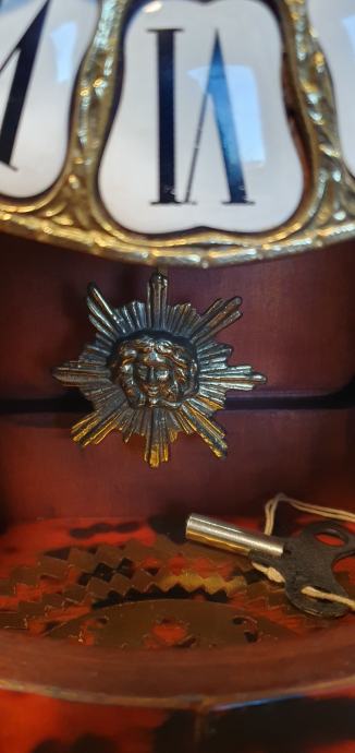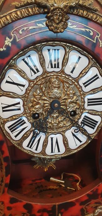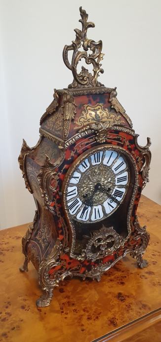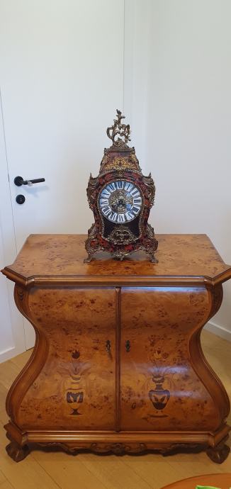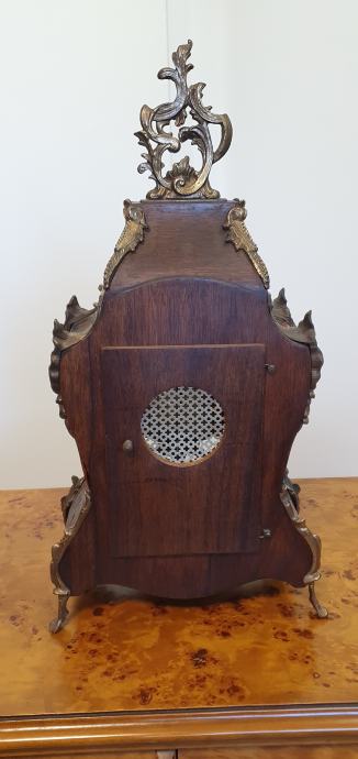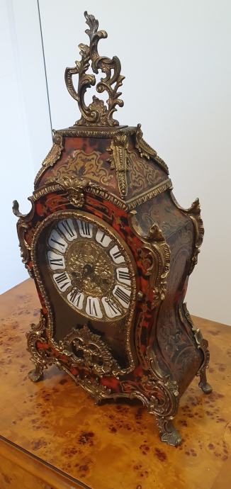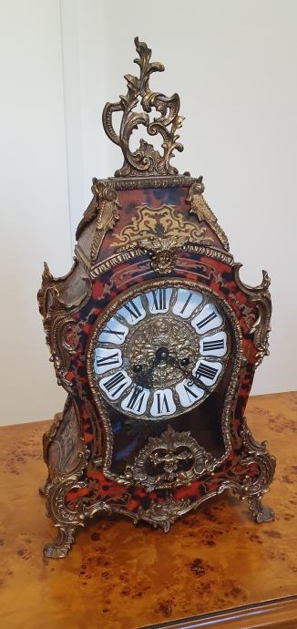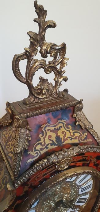 Francuski kaminski sat s brončanim ornamentima, ispravan, masivan i težak.