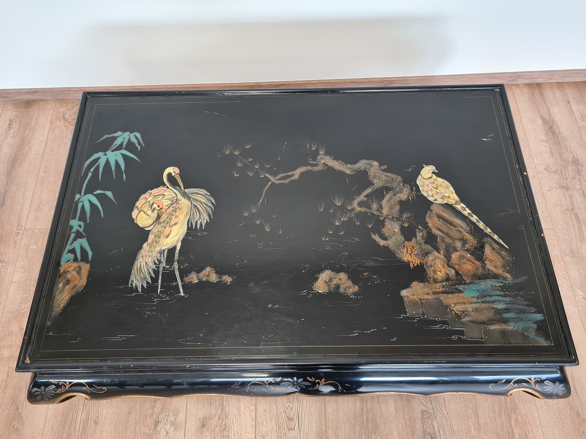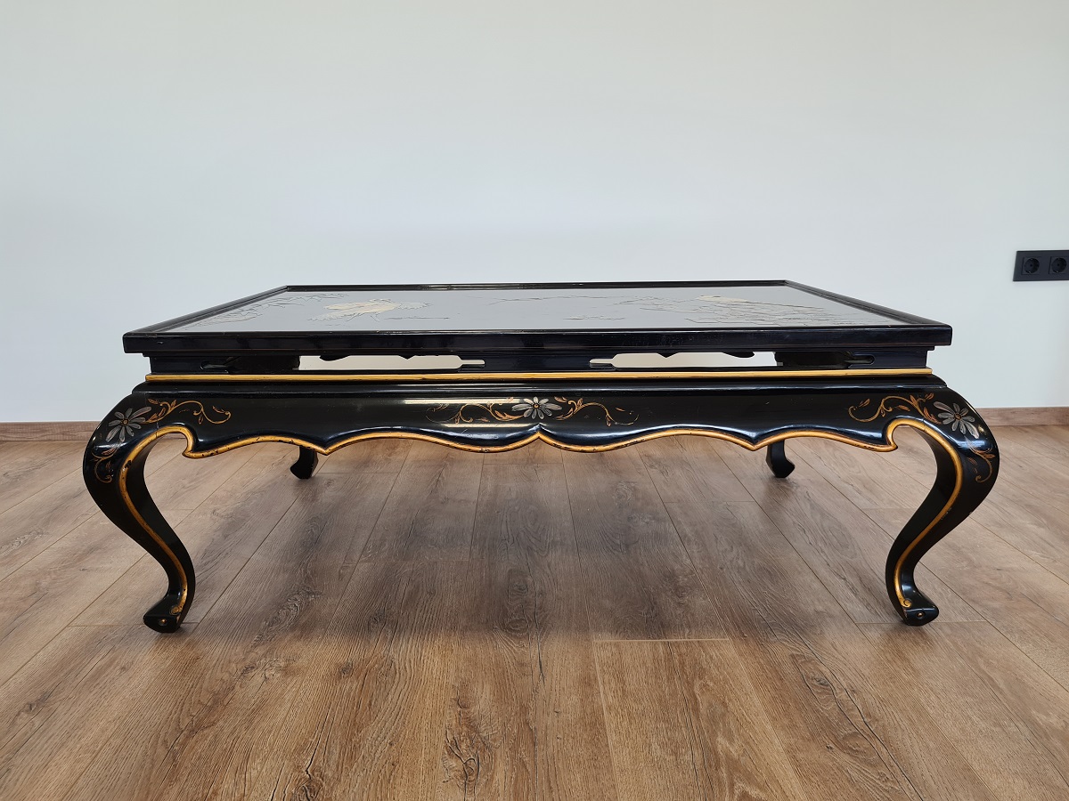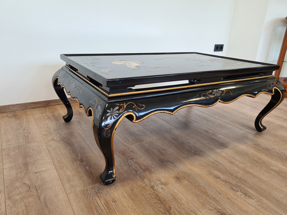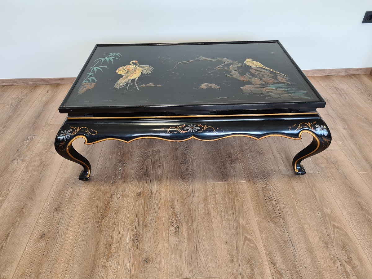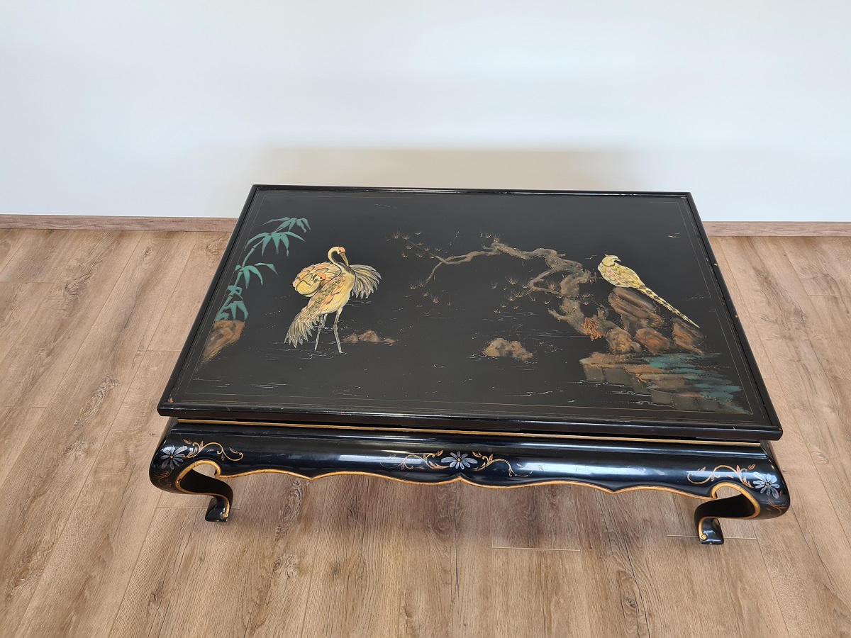 Kineski stol, ručno oslikan, predivni motivi, odlično stanje! Dimenzije: š 125 cm x dub 83cm x visina 47 cm.