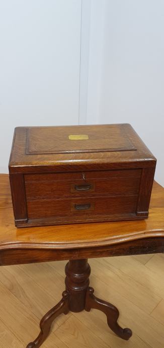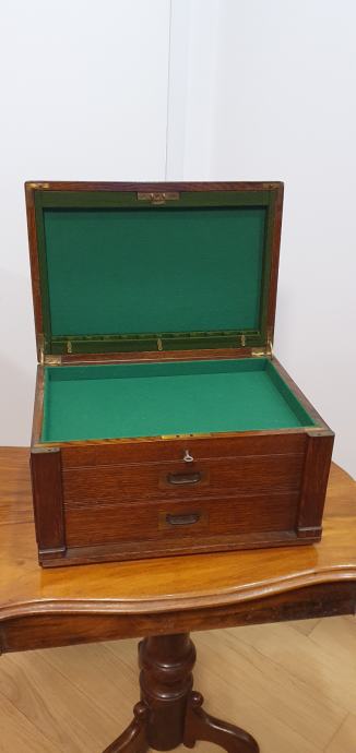 Restaurirana drvena kutija, ima pripadajući ključ, ispravna brava, može biti višenamjenska. Za čuvanje nakita, satova ili slično.